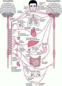 Enligt medicinsk forskning sköter sig det här systemet på egen hand och utan inblandning av vår vilja. I den österländska medicinen menar man däremot att det går att kontrollera vissa funktioner, såsom blodtryck och hjärtfrekvens, med medvetandekontroll. Vid ett öst-väst expriment lät man tibetanska munkar gå in i meditativa tillstånd. Man avfyrade därefter ett pistolskott och kunde konstatera att de reflexer som vanligtvis uppkommer vid höga och skarpa ljud, endast var marginella hos munkarna i jämförelse med vanligt folk vid vaket tillstånd. Bland annat gällande blodtryck, puls och hjärnvågor.
