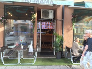 ”Gott” betyder det kort och gott. Sitter utanför Ki Mama och väntar på min mat. Lite standard sushi idag men vanligtvis blir det annat. Riktigt bra mat faktiskt även om jag ännu har svårt för california rolls och andra halvhybrider.