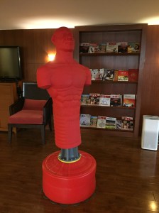 Golvet har en mjuk matta och hantlarna löper med uppda kiloantal. Sedan finns det naturligtvis en Dummygubbe istället för sandsäck vilket uppskattas av oss Sandautövare. Mer kampsportkänsla helt enkelt.