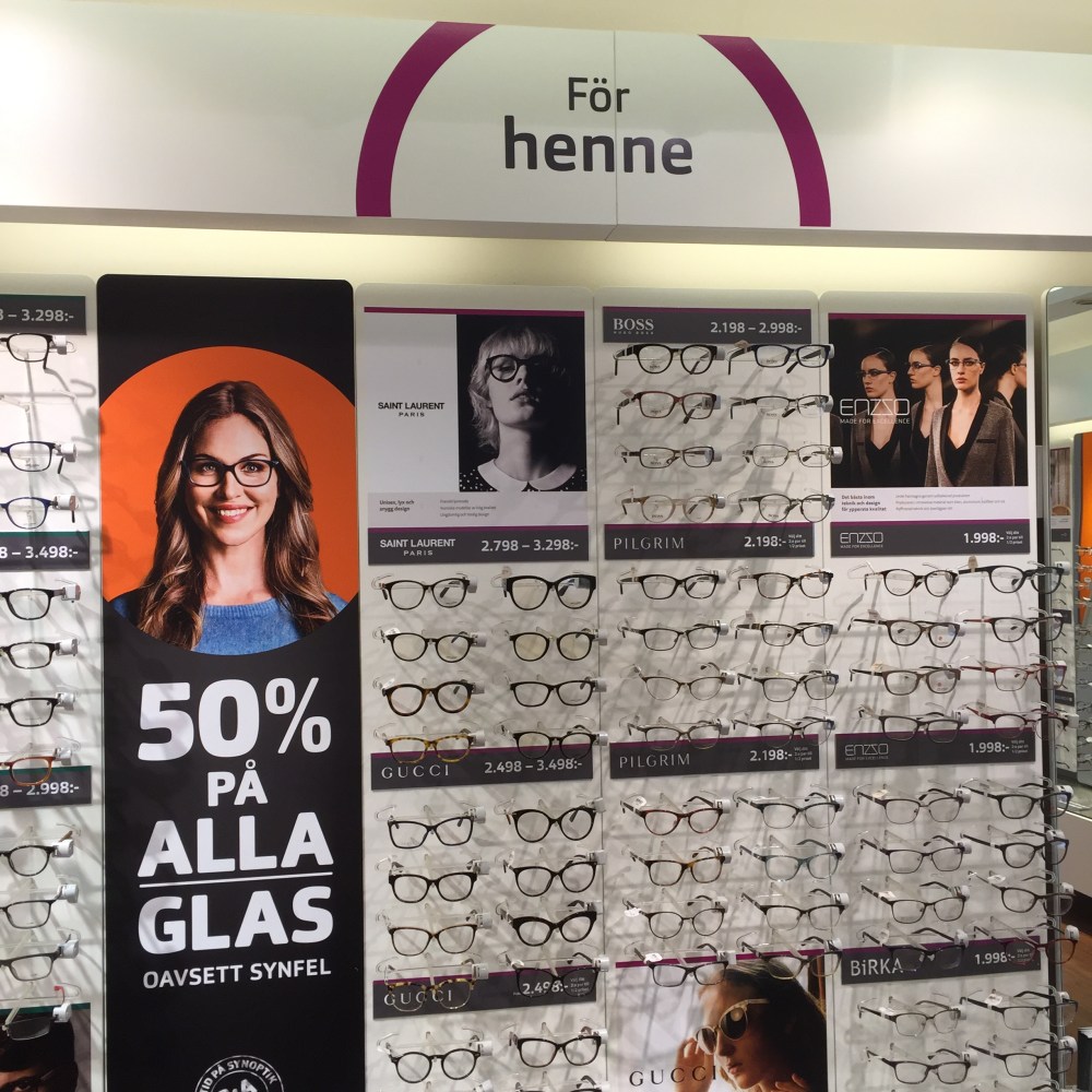 Det är lätt att klaga och ännu lättare att glömma bort beröm. Idag var jag med familjen på stan och en av oss behövde en synundersökning. Synsam först (kanske var jag påverkad av all reklam som jag för övrigt tycker är bra) men där fick man stå i kö för att få veta att det var två veckors väntetid.
