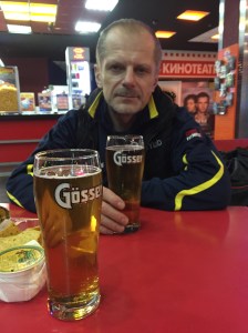 Efter 6 dagar i sträck i en idrottsarena och idrottsby som är omringad av staket och vakter, längtar man efter en kall öl. Vi lämnade arenan och promenerade längst parkväger i riktning mot neonljusen. Ingen pub i sikte någonstans. Så till slut hittade vi en biograf, på en nedsläckt våning högst upp ovanför supermerkadon. Där fanns nachos och kall öl på fat. Vilken lycka.
