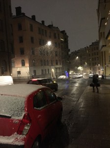 och än en gång verkar det ha kommit som en överraskning. Själv har jag märkt att den första snö som faller varje år är den vackraste. Mörkt på vår gata om morgonen men så vackert kring Brunnsviken idag. Något att glädjas åt. I en värld som denna får man inte ta vacker natur för givet.