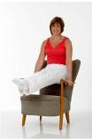 Man tager vad man haver och i det här fallet blev det en fotölj att träna med. Det är helt enkelt bara att sätta sig ner och försöka lyfta upp kroppen från stolen. Går det bra kan du sträcka ut den ena benet. Gick det bra sträcker du helt sonika ut det andra med. Håll tills du tröttnar.