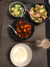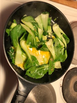 Kinesisk mat har alltid flera rätter och en måste vara grönsaker. Igår blev det Pak choi sallad som jag fräste i olja. Två ägg kläcktes i och kryddor var sesamolja, sesamfrön och vitlökssalt.