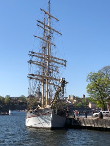 Hon är allt bra ståtlig af Chapman där hon ligger längst kajen vid Skeppsholmen. Det var en fantastisk idé att låta henne få bli ett vandrarhem. Vad kan väl vara härligare när man är ung än att få bo på en båt i en främmande stad, omgiven av vatten och stadslivets alla nöjen en stenkast ifrån sängen?