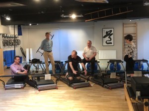 Jag, Frasse och Anatoli splittade gruppen för lite prova på med Reformer och Cadilac. Jag måste säga att det var god form på gruppen. Glada och nyfikna och det gillar vi. Sist ut gick vi från Ylab fakta till Ylab nöje där vi körde lite maskindans och Sportwall.