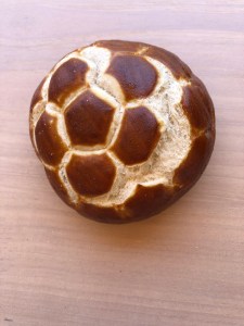 Ibland undrar man var alla idéer kommer ifrån. Var och handlade i den lokala Mercadon idag och hittade ett bröd som såg ut som en fotboll. Vad kan vara mer passande än en fotboll under VM i fotboll? Jag undrar om det finns en enda unge som inte vill köpa fotbullen och kanske en hel del vuxna gör samma sak. Köpte vi några bullar? Självklart gick vi på den lätta.