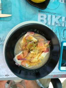 Vi träffar Per Tesch, känd svensk forskare i fysiologi som numera jobbar från Spanien med respektive. Intressanta samtal och en härlig lunch på stranden. Strandmat brukar inte vara det bästa men maten här översteg allas förväntan.