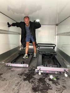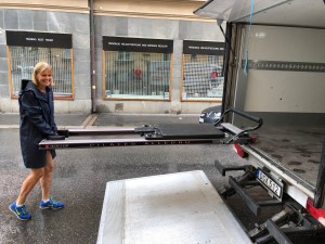 Packa, bära, lasta, packa, bära, lasta i någon timme vilket är en fantastisk träning. Biceps bryr sig inte om vilken typ av skrot man lyfter utan bara att det är tungt och man lyfter tillräckligt många gånger. Det gjorde vi. Naturligtvis började det regna när vi skulle lasta upp alla reformrar och combistolar på kärran men vad gör det när man är glad och jobbar ihop med sin man. Jag älskar regn för övrigt.