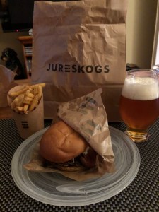 På vägen hem traskade vi förbi Jureskogs nya ställe i hörnet av Sveavägen och Tegnérgatan. Det är hamburgare i ett slags fast food upplägg i en ganska kal och minimalistisk restaurang. Men det är kvalitén i maten som han säljer och hamburgarna går inte av för hackor. Det blir definitivt en konkurrent till Flippin Burger som vi prisat i flera år.