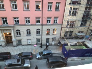 Nu är det spännande värre. Hela gatan utanför mitt fönster är igenproppad av ett flertal bilar med mörka glasrutor. Ut sprang ett gäng svartklädda piketpoliser med vapen och yxor i högsta hugg. Man kan ju inte låta bli att bli nyfiken och undra vad som händer. En ny ”no go zone” i mitt kvarter? Fantasin flödar eftersom jag just nu håller på att se serien Breaking Bad. Kanske är det drogtillverkning på min gata.