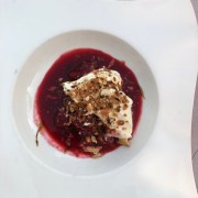 Det var en vacker och varm kväll då man gärna sitter utomhus. Trevlig personal serverade en torskrätt som var mitt i prick. Till dessert tog jag Cheescake vilket inte var cheesecake alls men så ortroligt gott att jag inte kunde invända. Philadelfia ost, breadcrumbs och körsbär ….mmmmm.