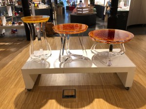 Det blev en ordentlig promenad i gamla staden vår sista dag. Den här gången på mindre gator där man ofta hittar små originella butiker. En utställning hann vi med och jag föll för de här tre vackra borden och hade önskat att ekonomin tillåtit att ta med ett hem. Men jag gråter inte över det för det blev ett par saker till Ylab i allafall. Vår vana trogen köper vi alltid något nytt varje sommar.
