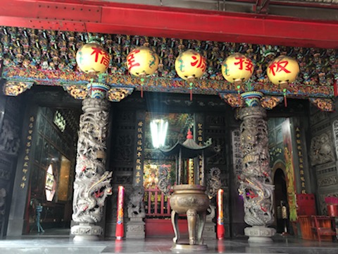 Vi promenerade istället runt i gamla kvarter som tydligen blivit ett stamområde för små västinfluerade kaffeställen. Så det hela slutade med en hink kaffe och bagel med sylt (i massor). Pittoreska små gator och mitt ibland dessa ett klassiskt tempel med sedvanliga ornament och rökelseurnor.