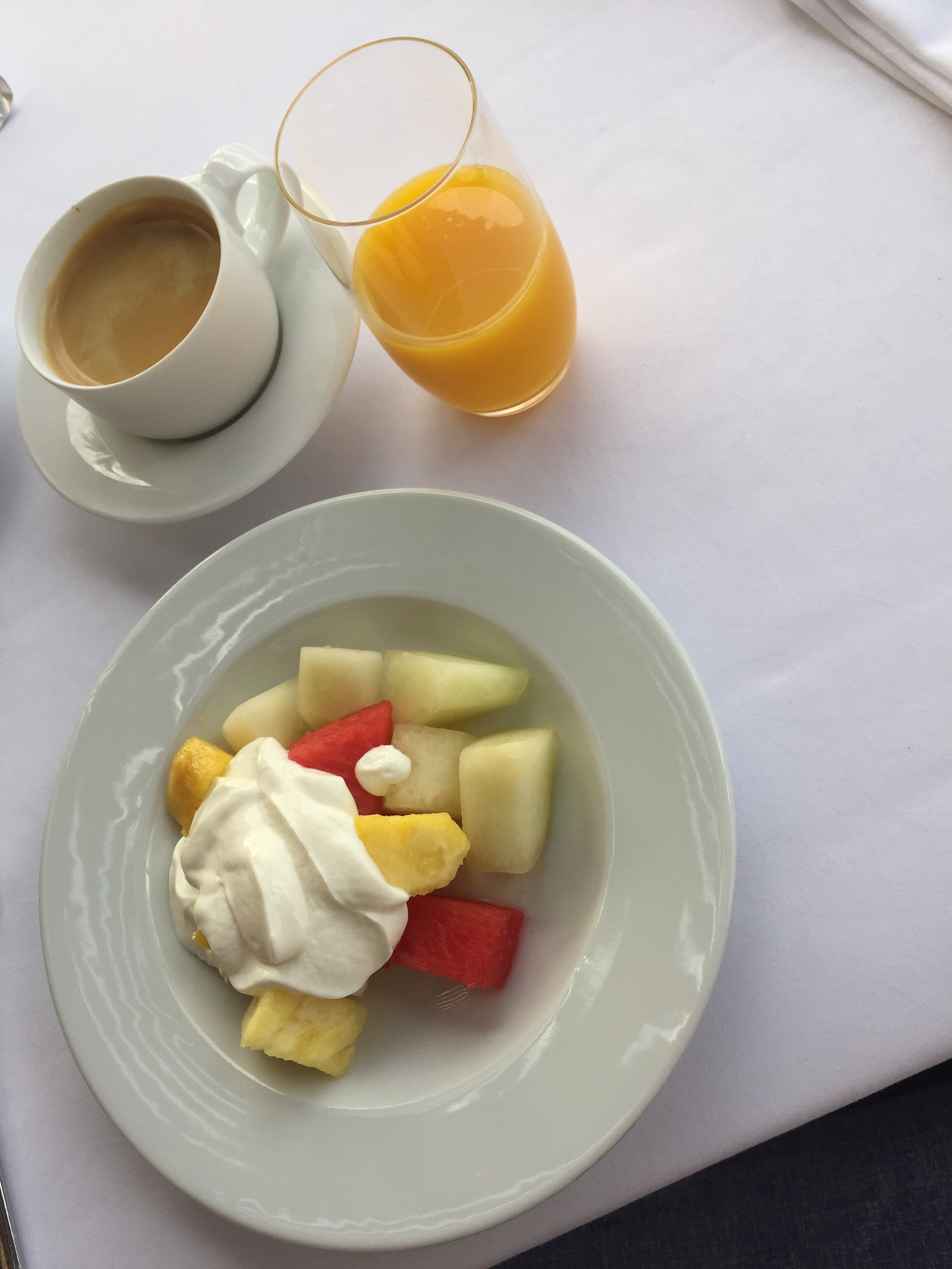Så efter morgonpasset äter vi en frukostbuffé som oftast består av grekisk yoghurt, frukt och äggröra med bröd för min del. Anatoli håller sig till frukt och croissanter med sylt. Därefter är det raka spåret till stranden för solstol och läsning i någon timme innan vi tar en timmes promenad längst vattnet. Tillbaka till solstolen och läsningen innan vi går till poolen och simmar. Härligt uppfriskande.