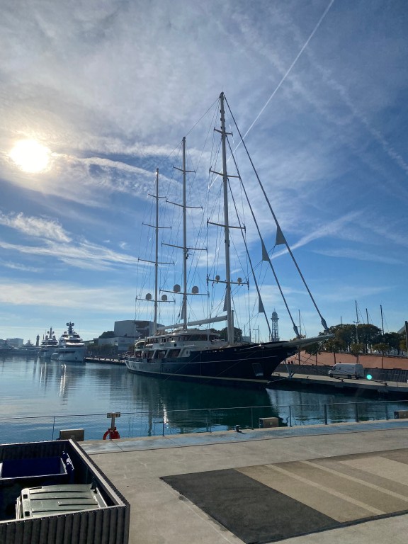 Fjorton grader varmt i morse när vi tog vår traditionsenliga joggingrunda samtidigt som solen gick upp. Efter frukost blev det en lång promenad från W till Barceletta och vidare till via Port Vill som som vanligt hade fullt av vackra båtar i marinan. En riktigt vacker skapelse blev min favorit.