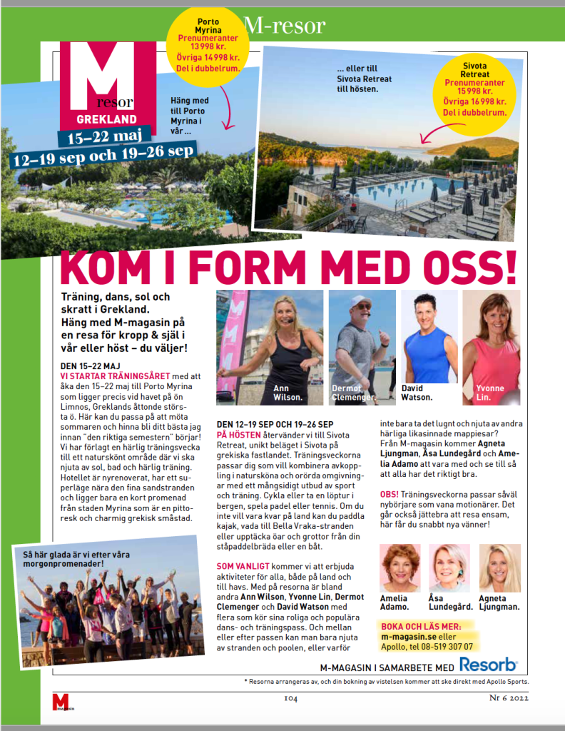 Någon som vill följa med den 15-22 maj? M-magasin ordnar en träningsresa för ”mogna” med ungt hjärta och fart på benen.