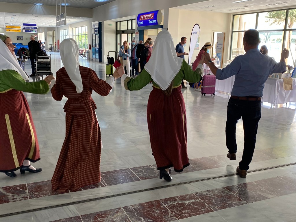 Så har vi då landat i Porte Myrina. Första lasset med turister till ön någonsin! Lokala folkdansare och drink på flygplatsen vid ankomst kändes väldigt välkommande och för mig personligen blev det nostalgi. Man minns ju trots allt nya länder, nya världsdelar och nya platser som just börjat satsa på turism. För mig var det Lankawi, Bali och Taiwan, jag var med från början innan allt exploaterats.