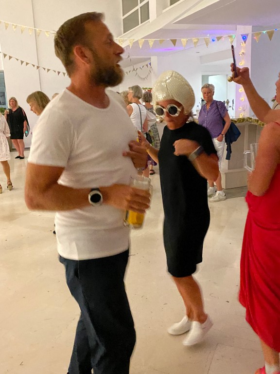 Bilden tog vi innan diskot började, en helt galen och makalös tillställning som innehöll allt från deltagarnas linedance till bartenders som dansade grekiska danser on demand. Utstyrseln var det inte heller något fel på.