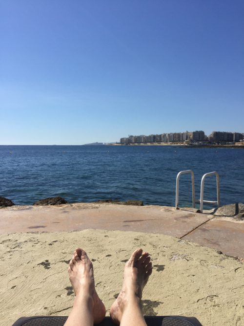 När arbete svämmar över ser jag till att lägga mig tidigt och se till att få den sömn som jag behöver för att orka med dagens utmaningar. När jag är på semester, som nu, får jag göra det jag tycker allra bäst om – träning. Så morgonen börjar med en kort löprunda följt av lite österländska kampsportsserier och trappträning (ni kan tänka er vad det är) eller stillsam tai chi.