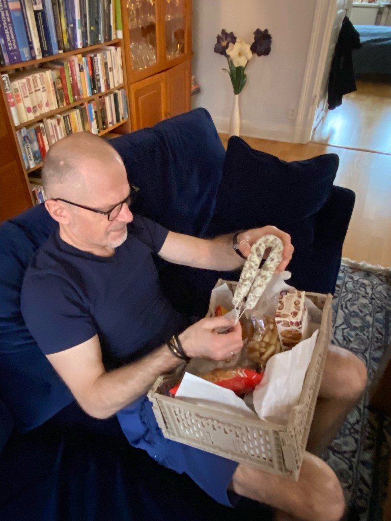 Barnen känner sin pappa så det blev whisky från Japan som Chris hade med sig och sedan blev det en hel låda med goda saker vilket alltid i mitt i prick. Champagne blev det också för även vänner känner till hans svagheter.