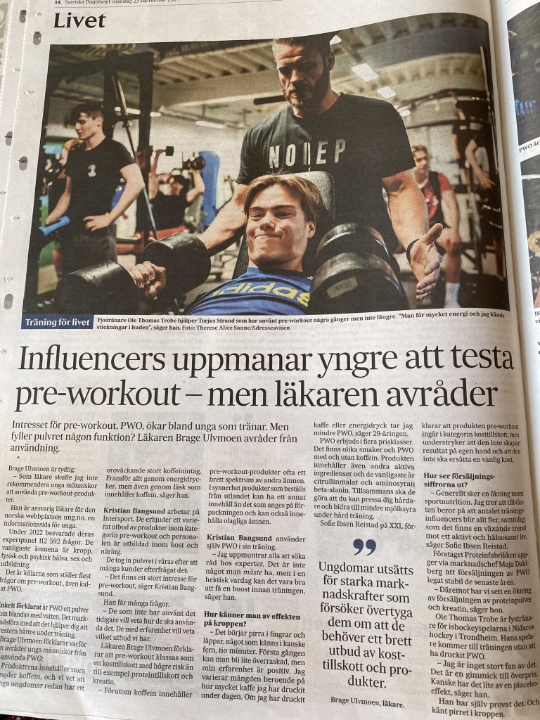 I en artikel i dagens Svenska Dagbladet diskuteras PWO mot bakgrund av att det ökar bland ungdomar och rekommenderas av tränare och gym med löfte om att träningen förbättras. Läkare avråder däremot bland annat för att PWO innehåller stora mängder koffein något som många ändå får för mycket av. Vissa avstår dock eftersom man tycker att pirret som uppkommer är obehagligt.