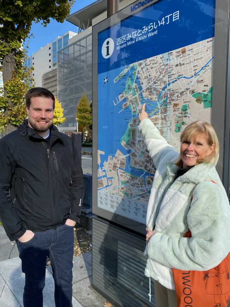 En sensommarvarm dag i strålande solsken när vi satte oss på tåget till Yokohama. Det tar en halvtimme från Tokyo och väl framme mötte Christian oss vid stationen. Han bor i närheten. Sedan började vår vanliga dagsvandring genom passager och gångvägar omgivna av moderna byggnader.